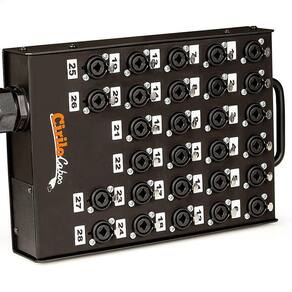O produto montado pela Cirilo Cabos é composto por 36 vias com Conectores Combo Painel. A estrutura feita em metal com pintura epóxi preto, tem uma alça para facilitar o transporte. O cabo espaguetado e numerado via-a-via orienta para usabilidade do produto.