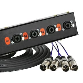 Medusa montada pela Cirilo Cabos com conectores Combo, marca própria. A vantagem do combo é poder plugar dois tipos distintos de conectores, o XLR e o P10 plug banana. Na ponta dos cabos vão conectores XLR macho. Este produto é ideal para transmissão de som profissional, sem prejuízos na qualidade ou interferência de ruídos externos.
