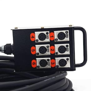 Este produto vai te auxiliar na organização de palco e distribuição dos canais para instrumentos e músicos. A medusa de som com seis vias é um ponto de ancoragem de palco que vai reduzir o fluxo de cabos levados até a técnica. Com ela você otimiza seu projeto de som, conectando instrumentos com saída P10, cabos de microfone e outros.