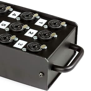 A banheira da Cirilo Cabos feita em metal com pintura epóxi preto, tem uma alça para facilitar o transporte. O cabo espaguetado e numerado via-a-via orienta na usabilidade do produto. Na extremidade do multicabo, tem uma mola de proteção. Esta caixa de conectores é resistente e durável, suporta o ritmo de trabalho de quem produz engenharia sonora.