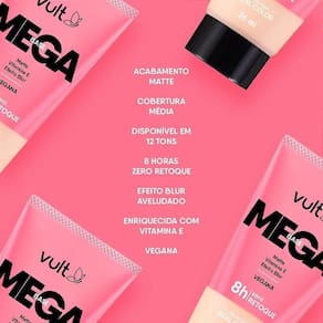Vult Make Mega Base V320 Base Líquida Vult Make Mega Base proporciona efeito matte aveludado, oferecendo 8 horas de make sem retoques. A Base Líquida Vult Make Mega Base foi desenvolvida com Tecnologia Real Color, que apresenta cores reais para peles reais, garantindo alta pigmentação e tons fiéis da embalagem para sua pele. Com acabamento construível, sua fórmula é vegana, cruelty free e enriquecida com Vitamina E, deixando seu rosto com aspecto uniforme e com longa duração. Ean: 7899852020594