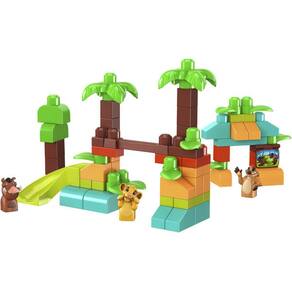Hakuna Matata. O mundo de O Rei Leão ganha vida com este grande e colorido conjunto de blocos de montar que também inclui peças especiais com tema tropical. Com um escorregador na selva e peças que giram para revelar larvas deliciosas, as versões de Block Buddies do Simba, Timão e Pumba podem se banquetear enquanto seu filho brinca. Quando a brincadeira acabar, os blocos podem ser guardados no recipiente abre-fecha e assim limpar tudo facilmente, sem ter que se preocupar.