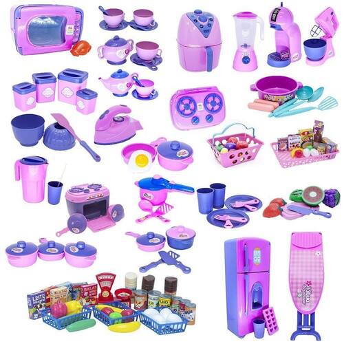 Mega kit completo infantil cozinha eletro mercado 131pç produto em estoque o kit vem com cozinha completa, mercado completo, cesta com frutas e legumes, cesta com comidinhas, frutinhas que se dividem com tábua e faca --------------------------------------------------------------------------------------------- -8 panelinhas: 12 cm x5 cm com 08 acessórios