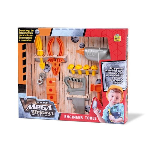 Mega Oficina De Ferramentas 0362 Samba Toys Super jogo de ferramentas para brincar de construir e consertar Acompanha acessórios para interagir com as ferramentas e deixar a brincadeira completa. Imagens meramente ilustrativas, as cores dos produtos variam sujeito a disponibilidade . Idade Recomendada: Acima de 3 anos Material: Plastico Cor: Cinza,laranja,amarelo Certificado do INMETRO:CE-BRI/BRICS 00275-16 NM 300/2002 Ean: 7898631554848