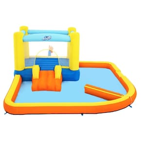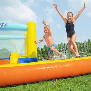 Características: Marca: Bestway Feita de PVC durável de alta qualidade Possui um pula pula com escorrega integrado Acompanha esguicho que joga água para cima, criando uma parede de água Dimensões: 365 cm x 340 cm x 152 cm Idade recomendada: de 2 a 8 anos Recomendado no máximo 5 crianças por vez Suporta 227 kg O parque aquático infla em menos de dois minutos, permitindo sua montagem simples. Acompanha bomba elétrica (infla o produto em menos de 2 minutos) ( é necessário que a bomba fique conectada no produto durante todo o uso)