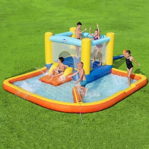 O Mega parque aquático inflável Torre Escorregador é diversão garantida! Acompanha um pula pula com escorrega, uma piscina, e um esguicho de água proporcionando horas de entretenimento para as crianças. O parque aquático infla em menos de dois minutos, permitindo sua montagem simples.