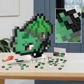 Transforme seu espaço com mega, construindo pokémon favoritos como o bulbasaur. Um tijolo de cada vez, a figura inspirada retrô ganha vida com a arte em pixel oficial. Exponha na mesa ou parede para mostrar sua paixão. Cada produto é vendido separadamente. Sujeito à disponibilidade. As cores e as decorações podem variar.