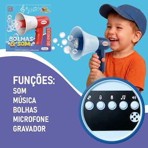 Com funçao de gravador e som, o brinquedo oferece uma experiencia completa de lazer e entretenimento. O pequeno artista pode gravar frases, ouvir musicas e ver as bolhas saindo direto do cone do megafone, o que cria um efeito visual incrivel. Ele e leve, facil de segurar e projetado especialmente para as maos das crianças, garantindo que a brincadeira dure por muito tempo com total segurança e praticidade.