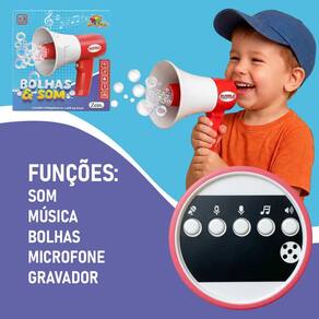 Com funçao de gravador e som, o brinquedo oferece uma experiencia completa de lazer e entretenimento. O pequeno artista pode gravar frases, ouvir musicas e ver as bolhas saindo direto do cone do megafone, o que cria um efeito visual incrivel. Ele e leve, facil de segurar e projetado especialmente para as maos das crianças, garantindo que a brincadeira dure por muito tempo com total segurança e praticidade.