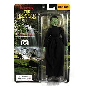 Este é o sensacional "Réptil" do filme Hammer. Esta figura de ação de 8" é lindamente esculpida para replicar o monstro do filme. A figura apresenta 14 pontos de articulação para pose criativa, guarda-roupa de tecido com precisão de filme, e vem em um cartão retrô ambiente legal! Um fantástico monstro colecionável, ótimo para os entusiastas de monstros aqui, ou do outro lado da lagoa. Recomendado para colecionadores com 17 anos ou mais.