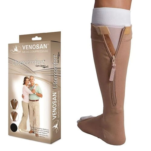 É uma meia panturrilha para o tratamento de úlcera venosa, auxiliando no fechamento da úlcera mais rápido evitando a reincidência.
