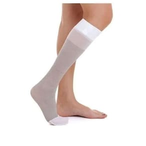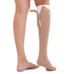Possui um sistema de sobreposição de 2 meias, que juntas atingem uma compressão extra forte de 30-45 mmHg.