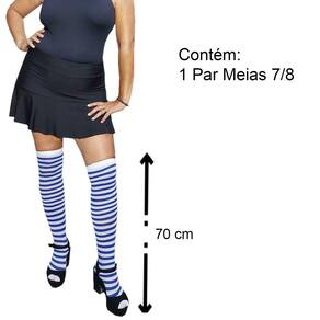 Meia 7/8 Longa Listrada Azul e Branco Marinheira: Festa Fantasia Cosplay Dança Carnaval.