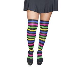 Meia 7/8 Preta com Listras Coloridas: Festa Fantasia Cosplay Dança Carnaval.