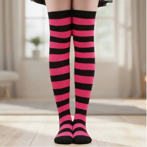 Meia Até Joelho 7/8 Preta Com Listra Pink Cosplay Festas