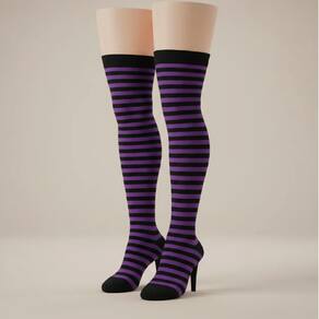 Meia Até Joelho 7/8 Preta Com Listra Roxa Cosplay Festas