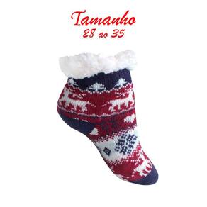 Meia Azul Marinho Peluciada Antiderrapante Espírito Natalino 28 ao 35 -