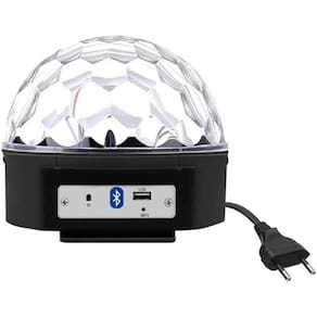 Globo de Luz Led Magic Cristal Ball Light possui em seu interior 6 leds de 18W de potência, proporcionando uma linda de iluminação holográfica. Seu domo transparente foi especialmente projetado para criar feixes de luzes fortes e condensados ao mesmo tempo, iluminando o ambiente. Possui 90 lentes em seu domo colmeia gerando incríveis 540 pontos de feixes luminosos. Este Globo tem várias funções: modo colorido, formações holográficas automáticas, efeitos mistos de desenhos, Single e Sensor de som que acompanha a música que estiver tocando no ambiente. Possui alto-falantes embutidos: basta inserir o pendrive ou cartão e escutar as músicas. Não é necessário ter outro aparelho de som, possui um ótimo desempenho para pequenas festas. Voltagem: 110/220V (Bivolt) Material: Acrílico e plástico Bluetooth Baixo consumo de energia Plug & Play Ângulo de trabalho de 138 Recomendado para festas e eventos Design moderno em formato de meio globo Possui furos para fixação Projeção LED multicolorido (Vermelho, Verde, Azul, Branco, Pink, Laranja) Leds de alto brilho Modo Automático Programável (Fade, Strobo Colorido, Mista e Single) Funciona pela Batida da Música via sensor Funciona no modo automático Carcaça de plástico Itens incls: 1x Globo de luzes 1x Controle remoto 1x Fonte bivolt Funcionamento da bola maluca: Depois de ligar o aparelho na tomada, as luzes vão acender, mas sem som de música, elas ficarão paradas. Pode ser com um pen drive ou pareado ao bluetooth do celular. Ao ligar a música as luzes começaram a se mover. Toda a iluminação e padrões dos leds são automáticos, inclusive o sensor de batida. As luzes led da bola seguirão o ritmo da música. O sensor de batida é mais evidente quando a música tiver uma batida mais forte. Dimensões do produto: 14x18x18cm Peso do produto: 395g Dimensões da embalagem: 19x19x17 cm Peso da embalagem: 510g Código do produto: GT636
