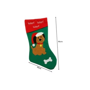 O que não pode faltar na decoração do seu natal é a meia para árvore, fundamental para compor seus enfeites natalinos e proporciona mais elegância e tradicionalidade! A bota / meia para árvore da Yangzi é feita em feltro verde e este modelo exclusivo tem decoração de cachorro com gorro noel! Pode pendurar na janela ou junto a decoração de natal próximo a sua árvore!