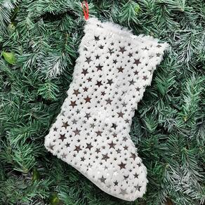 Meia Bota Pelúcida Pendente Enfeite Natalino Estrelas 32cm Prata -