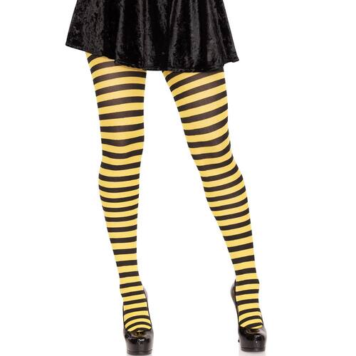Leg Avenue Meia-calça feminina listrada de nylon, Preto/Amarelo