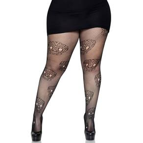 - Spooky nunca pareceu tão sexy como nas meias arrastão Leg Avenue Lace Skull Fishnet. A meia-calça de designer apresenta uma meia arrastão clássica, padrão de caveira de açúcar de renda ousada e ajuste de cintura alta