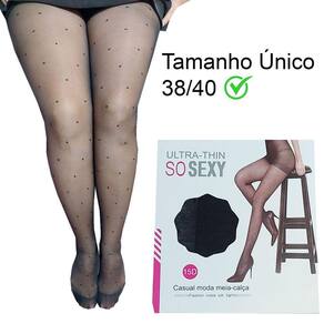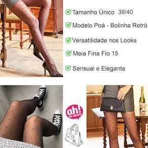 Meia Calça Poá Fio 15 - Meia Fina com Bolinhas Modelo Retrô Tamanho Único 38/40. Tamanho único que atende até a numeração 40, se moldando ao corpo. Disponível na cor preta, com bolinhas médias pretas, ponta do pé com ponteira e barra superior reforçada. Indispensável no guarda-roupa da mulher moderna, pois vai bem em qualquer ocasião, do clássico ao mais ousado. As bolinhas são médias, medindo aproximadamente 0,40 cm. Composição: 80% nylon, 20% spandex. Produto delicado, deve ser lavado à mão. Comprimento aproximado da meia ao retirar da embalagem 0,96 cm. Cavalo 22 cm. Combina com qualquer tipo de calçado, o que proporciona versatilidade na peça. Atenção: Produto de alta rotatividade. Recebemos novas remessas semanalmente e algum detalhe pode variar conforme o lote recebido, porém o produto é o mesmo e mantém as mesmas características e qualidade. Contém: 1 unidade na cor preta em tamanho único 38/40. Fotos ilustrativas e reais do produto.