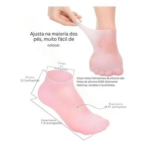 Meia de silicone para pés macios livres de rachaduras par 33 até 40 As nossas meias de silicone ajudam na prevenção de rachaduras nos pés, hidratação da pele e o conforto que protege. Fabricada com material de qualidade e pensado na sensibilidade e conforto que os nossos pés precisam, as nossas meias são antialérgicas.