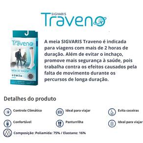A Meia SIGVARIS TRAVENO é a companhia perfeita para viagens com mais de 2 horas de duração, proporcionando conforto e proteção durante todo o trajeto. Desenvolvida para evitar inchaços e melhorar a circulação venosa, é ideal para quem busca bem-estar em qualquer tipo de deslocamento.