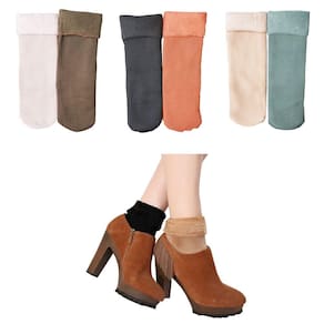 Meia Feminina Térmica Canelada com Pelúcia Fleece Frio Intenso: 2 pares.Tamanho único que atende da numeração 35 a 42, pois possui elasticidade se moldando aos pés.Cores: marrom, preto, rose, verde, caramelo, bege, vinho, entre outras conforme lote. Enviaremos kit com 2 cores diferentes, proporcionando maior versatilidade na combinação dos looks. Devido o alto giro do produto NÃO é possível a escolha de cores, enviaremos conforme disponibilidade de estoque.Tecido interno aveludado proporcionando isolamento térmico que repele o frio e mantém a temperatura do corpo.Pés quentinhos mesmo em contato com extremidades geladas como pisos e porcelanatos.Tecido respirável anti-odor: o aveludado interno absorve a umidade transportando-a para a face externa do tecido, mantendo a temperatura do corpo sempre estável. O tecido externo possui micro poros que aceleram a evaporação da umidade da pele, evitando odores.O tecido se adapta ao contorno dos pés, tornando as meias ainda mais confortáveis e extremamente fáceis de calçar. Costuras planas que evitam o desconforto durante a utilização.Projetada para ser utilizada com qualquer tipo de calçado, esteja você em casa ou no trabalho, em eventos ou mesmo viajando para lugares de temperatura muito baixa.Material: Algodão, Poliéster e Lã. Tamanho do produto: 28 cm comprimento x 8 cm largura.Modelo: Cano Médio.Atenção: Produto de alto giro. Recebemos novas remessas semanalmente e algum detalhe pode variar conforme lote recebido, porém o produto é o mesmo e mantém as mesmas características e qualidade.Devido alta rotatividade NÃO é possível a escolha das cores. Enviaremos 2 cores diferentes conforme disponibilidade de estoque. Contém: 2 pares em cores diferentes.Fotos ilustrativas e reais do produto. Não acompanha calçado.