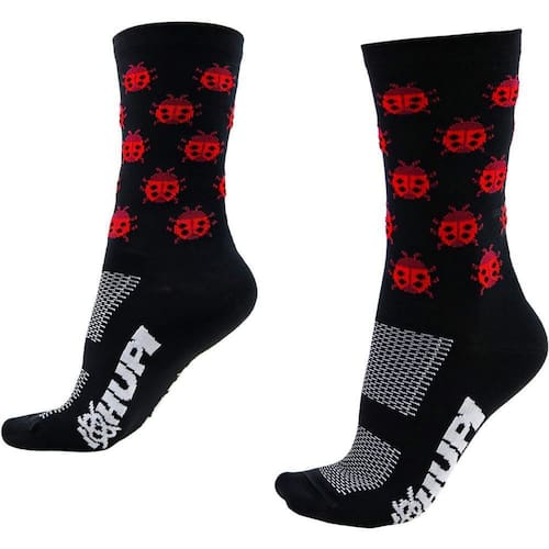 As regiões do calcanhar e da ponta do pé tem os atritos causados pelo contato com o interior das sapatilhas e/ou tênis minimizados para garantir assim, maior durabilidade e conforto. A Meia Hupi Joaninha ainda conta com cores vibrantes e grafismo sublimando, ideal para montar estilos diferenciados para seus pedais, sem perder nada em qualidade.