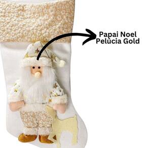 Meia Natal Decorada Papai Noel Pelúcia Luxo Star Gold 50cm Branco e Dourado
