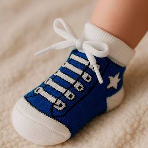 Nossas meias modelo sapatinho com estampa de tênis são perfeitas para manter os pezinhos do seu bebê quentinhos, estilosos e protegidos. Com sola antiderrapante, ajudam a prevenir escorregões quando ele começar a explorar o mundo ao seu redor!