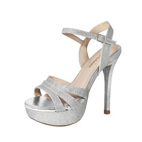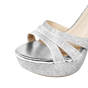 Linha de Meia Pata Salto Alto Fino Luiza Sobreira, produzida em material sintético na cor Gliter Prata, com palmilha e forro em P.U., solado em TR.