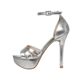 Linha de Meia Pata Salto Alto Fino Luiza Sobreira, produzida em material sintético na cor Prata, com palmilha e forro em P.U., solado em TR.