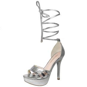 Linha de Meia Pata Salto Alto Fino Luiza Sobreira, produzida em material sintético na cor Prata, com palmilha e forro em P.U., solado em TR.