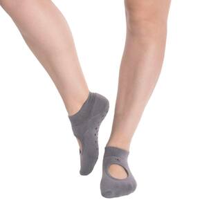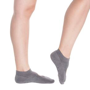 Para garantir uma experiência segura e livre de escorregões, a meia é antiderrapante, funcionando como uma sapatilha. A parte inferior da meia possui uma superfície texturizada que adere ao solo, evitando deslizamentos indesejados. Isso permite que você se concentre totalmente em suas práticas de Pilates, sem se preocupar com a estabilidade dos seus pés.