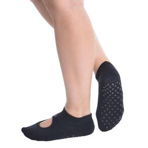 Para garantir uma experiência segura e livre de escorregões, a meia é antiderrapante, funcionando como uma sapatilha. A parte inferior da meia possui uma superfície texturizada que adere ao solo, evitando deslizamentos indesejados. Isso permite que você se concentre totalmente em suas práticas de Pilates, sem se preocupar com a estabilidade dos seus pés.