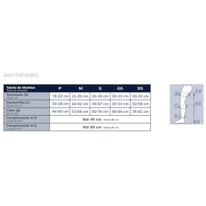 - G: Tornozelo 26 a 30 cm e panturrilha 39 a 47 cm.