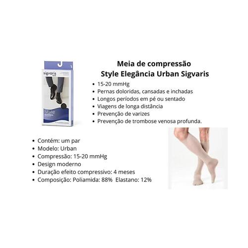 A meia 3/4 panturrilha 193B Urban da Sigvaris é uma meia social lisa, com compressão graduada, desenvolvida para o público masculino.