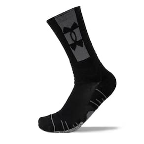 Meia de Treino Unissex Under Armour Playmaker Mid Crew, modelo cem costura no dedo do pé oferecendo desempenho livre de irritações. 96% Poliéster e 4% Elastano.