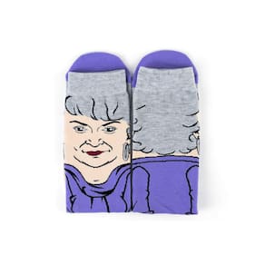 Você acabou de chegar em casa depois de um longo dia de trabalho e está pronto para relaxar durante a noite. Qual é a melhor maneira de obter o máximo de conforto? Com The Golden Girls, é claro! Este par hilário de meias Golden Girls é a companhia perfeita para se divertir com uma noite de compulsão assistindo uma das séries de TV mais cômicas que já foram ao ar! Comemore seu amor pelas Golden Girls trazendo alegria e risadas para si mesma com este par de meias estampadas Dorothy Zbornak!