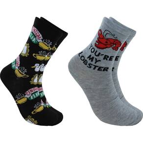 Meias casuais oficialmente licenciadas pela Hypnotic Hats. Essas meias redondas casuais são 97% poliéster/ 3% elastano e vêm em um pacote de 2 com estampas tricotadas de qualidade de suas favoritas da cultura pop. Serve para calçados femininos de 4 a 10, fabricados na China.