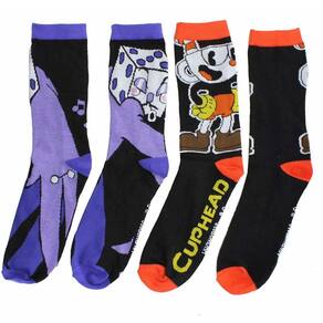 Coloque um pouco de estilo em seus passos com estas divertidas meias Cuphead! O conjunto inclui meias vermelhas com Cuphead e meias azuis com King Dice. Feito de 98% poliéster confortável, 2% elastano. Meia masculina tamanho 36-44. Oficialmente licenciada. Um ótimo presente para qualquer fã de Cuphead!