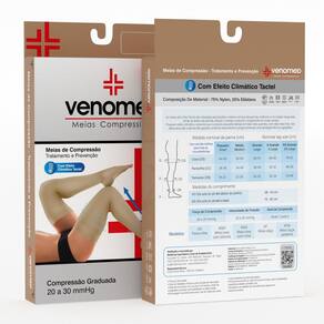 Meias tratamento 20 30mmhg ab. Efeito climático 7/8 venomed Tamanho: xgg Cor: bege Informações completas na parte interna da embalagem. Medir: tornozelo, panturrilha, coxa. As meias da linha tromb facilitam o retorno venoso das pernas, melhoram a circulação sanguínea, aliviam dores, reduzem inchaço e previnem varizes, conforme indicação médica. Oferecem efeito climático, evitando calor excessivo em dias quentes e frio em dias frios, proporcionando conforto térmico. O efeito compressivo é garantido por 3 a 6 meses, segundo padrões internacionais. A durabilidade física varia com os cuidados de conservação e manuseio do paciente. Marca: Não Informado Ean: 7908622810799