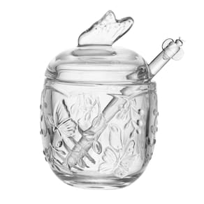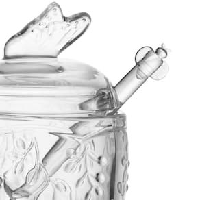 Enriqueça sua mesa com o encanto da Meleira com Pegador de Cristal Ecológico New Butterfly de 220ml da Lyor, esta meleira exibe uma estampa delicada de borboletas e flores, adicionando um toque refinado às suas composições.