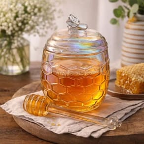 A Meleira de Vidro Furta-cor C/Pegador Plástico Bee (Abelha) 230ml da Haüskraft é um item elegante e funcional, projetado para servir mel, caldas e molhos com charme e praticidade. Ela se destaca pelo seu design inspirado em colmeias e pelo acabamento furta-cor que reflete tons suaves. Marca: Não Informado