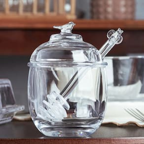 Meleira em Cristal Ecológico Bird Wolff: Elegância e funcionalidade em uma peça sofisticada. O design refinado, com um delicado pássaro na tampa, adiciona charme a qualquer mesa.