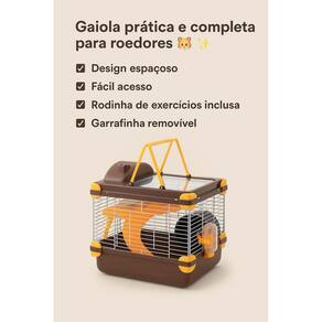 Melhor Gaiola Hamster Pequena Portátil com Kit de Acessórios A gaiola para hamster foi desenvolvida para oferecer conforto, segurança e praticidade tanto para o seu pet quanto para você. Com design compacto e moderno, ela é ideal para criar um ambiente saudável e divertido para pequenos roedores como hamsters e camundongos. A estrutura conta com base plástica resistente e grades metálicas que permitem ótima ventilação e visibilidade. Possui rodinha de exercícios, plataforma elevada com escada e garrafinha removível para água, garantindo que o animal tenha atividades, descanso e fácil acesso à hidratação. Graças ao sistema de encaixe prático, a gaiola é simples de montar, desmontar e higienizar, facilitando a limpeza do dia a dia. Além disso, seu tamanho é adequado para ambientes pequenos, podendo ser transportada com facilidade sempre que necessário. Benefícios: