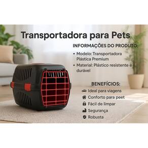 Com medidas de 48 cm de comprimento, 33 cm de largura e 29 cm de altura, ela é ideal para animais com peso entre 6 a 10 kg, proporcionando espaço interno suficiente para que o animal se acomode confortavelmente, inclusive em períodos prolongados de transporte.